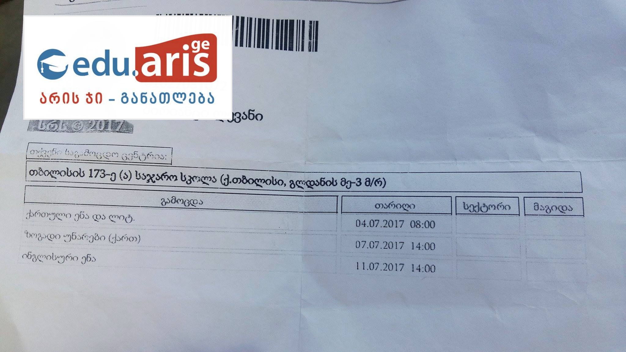 როგორც EDU.ARIS.GE-სთან აცხადებს, გამოცდების თარიღების დადებისთანავე ამობეჭდა საგამოცდო ბარათი, სადაც მისი თქმით, მითითებული იყო, რომ ქართული ენისა და ლიტერატურის გამოცდა 4 ივლისს უნდა ჰქონოდა, თუმცა როდესაც ბლანკი გუშინ საიტზე შეამოწმა, აღმოაჩინა რომ თარიღი შეცვლილი იყო და გამოცდა არა 4-ში, არამედ 3 ივლისს დილის 08:00 საათზე ჰქონდა დანიშნული.