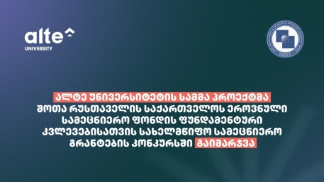 ალტე უნივერსიტეტის აკადემიური და მოწვეული პერსონალის მიერ მომზადებულმა 3-მა პროექტმა, შოთა რუსთაველის საქართველოს ეროვნული სამეცნიერო ფონდის მიერ გამოცხადებულ კონკურსში, სადაც ყოველწლიურად 600-მდე პროექტი მონაწილეობს, დაფინანსება მოიპოვა.