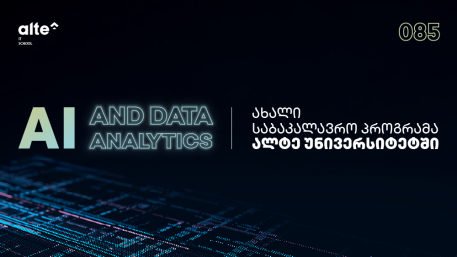 ალტე უნივერსიტეტის IT სკოლის ახალი ქართული და ინგლისურენოვანი საბაკალავრო პროგრამა – „ხელოვნური ინტელექტი და მონაცემთა ანალიტიკა“ აკრედიტებულია! პროგრამა მიზნად ისახავს ისეთი სპეციალისტების მომზადებას, რომლებიც შეძლებენ თანამედროვე ტექნოლოგიურ სფეროში ინოვაციების შემოტანას და კარიერის შექმნას როგორც ადგილობრივ, ისე – გლობალურ ბაზარზე.