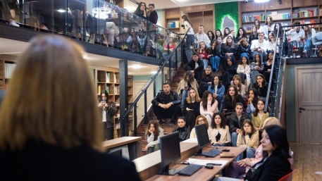 მოწვეულმა სპეციალისტმა, ონკოლოგმა ელენე ჯანბერიძემ ისაუბრა დაავადების ნიშნებზე, რისკ-ფაქტორებზე, პრევენციულ ნაბიჯებზე და სტუდენტების შეკითხვებსაც უპასუხა.