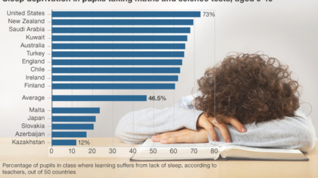საერთაშორისო განათლების მკვლევარების მიერ ჩატარებული ტესტირებების მიხედვით, ძილის ნაკლებობა მნიშვნელოვანი ფაქტორია, რომელიც აუარესებს სკოლის მოსწავლეების მოსწრებას.