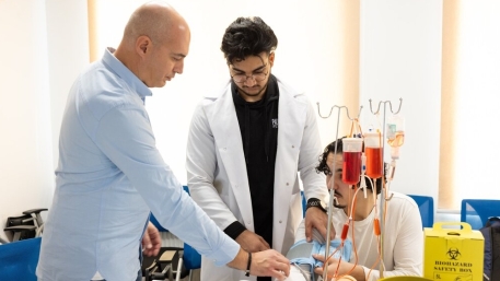 „ევროპის უნივერსიტეტის” დიპლომირებული მედიკოსის ინგლისურენოვანი პროგრამის სტუდენტებმა, უცხოელ პროფესორებთან ერთად, განიხილეს სხვადასხვა კლინიკური შემთხვევები, ჩაერთნენ საინტერესო დისკუსიებში და მონაწილეობა მიიღეს კლინიკურ და პრაქტიკულ სამუშაოებში.