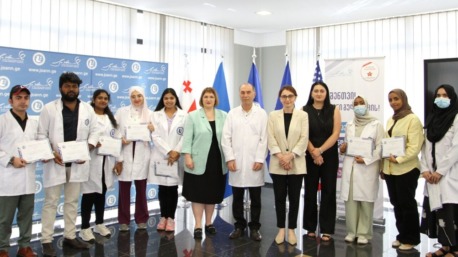 სტუდენტებს კლინიკური პრაქტიკის გავლის დამადასტურებელი სერტიფიკატები კლინიკის დირექტორმა ზაზა სოფრომაძემ, “ევროპის უნივერსიტეტის“ მედიცინის ფაკულტეტის დეკანმა ნათია ჯოჯუამ და დიპლომირებული მედიკოსის პროგრამის ხელმძღვანელმა თინათინ გოგნაძემ გადასცეს.