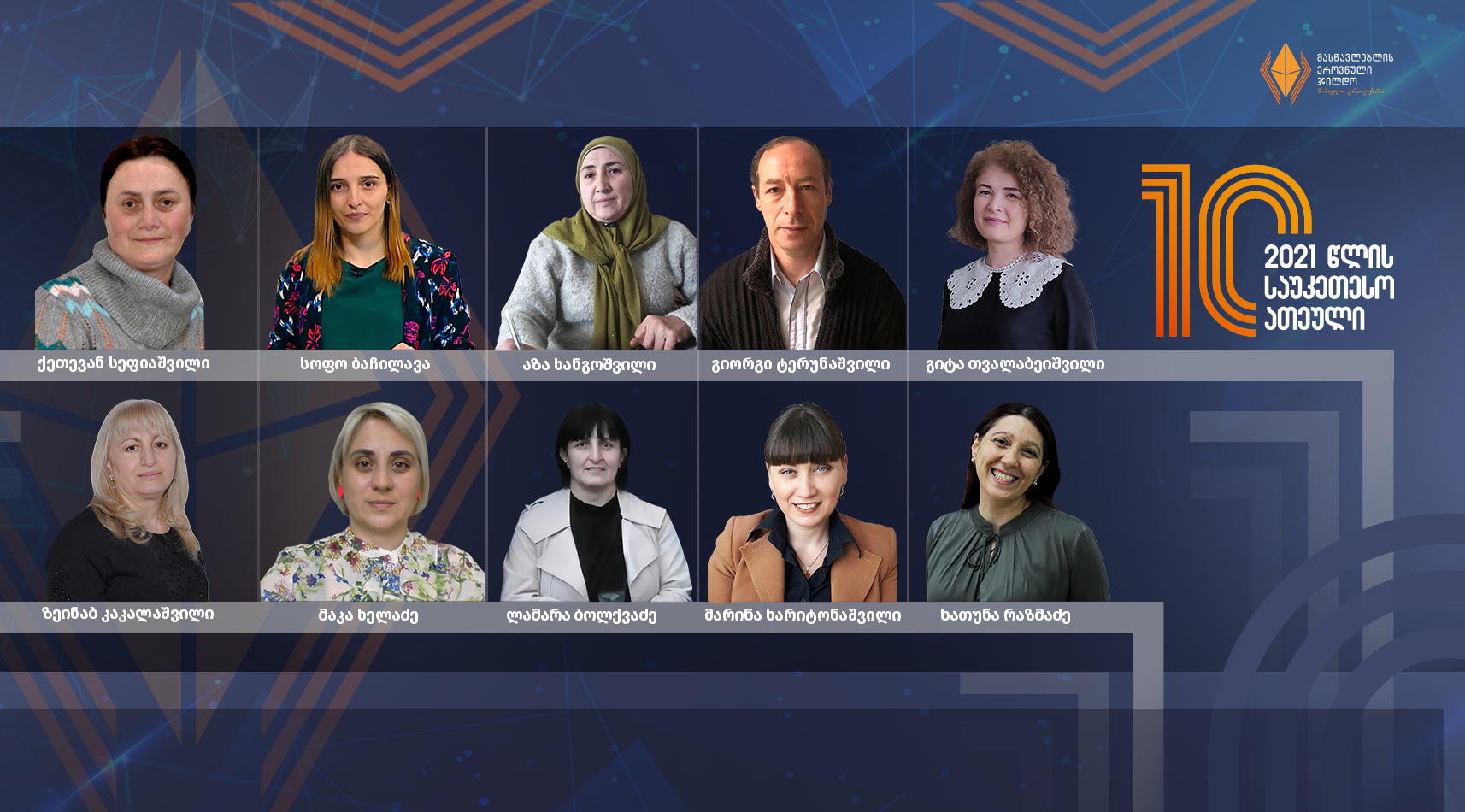 2021 წლის მასწავლებლის ეროვნული ჯილდოს გამარჯვებული 5 ოქტომბერს მასწავლებლის საერთაშორისო დღეს გამოვლინდება, მას, ფულადი პრიზის სახით, კამპანიის გენერალური სპონსორისგან – „გუდავაძე-პატარკაციშვილის“ ფონდისგან 10 000 ლარი გადაეცემა. საუკეთესო ათეულის დანარჩენ წევრებს ლიბერთი ბანკი დააჯილდოვებს.