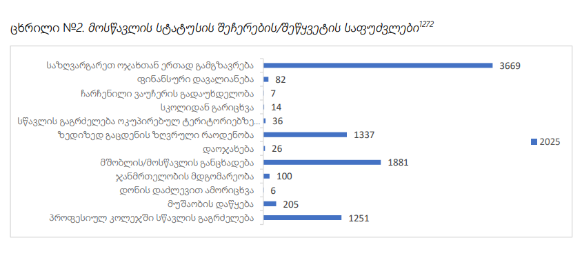 სწავლის შეწყვეტის მიზეზები კი 2025 წელს ასეთია: