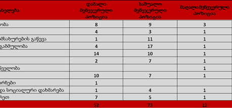 საქმიანობის სახეობის, მენეჯერული პოზიციისა და სექტორის წილობრივი გადანაწილების მიხედვით.