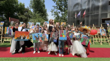 მოსწავლეები, მატარებლის ვაგონების მსგავსად, ერთ მწკრივში დგებიან და მიმდევრობით