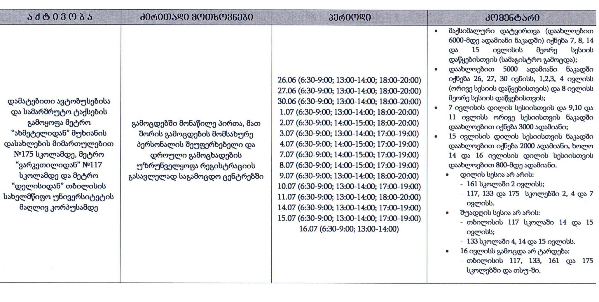 საგამოცდო ცენტრებთან მისასვლელად სპეციალური მარშრუტები დაინიშნება