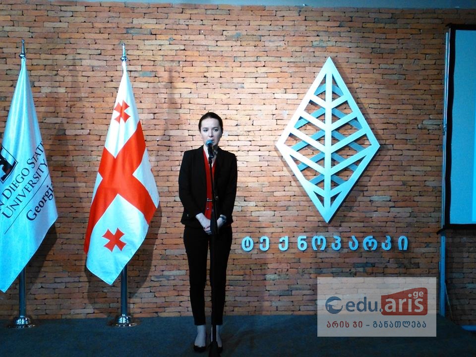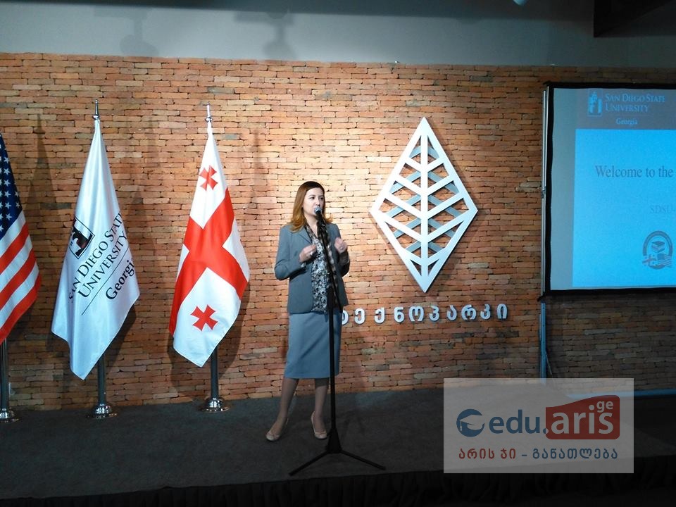„დღეს აქ შეიკრიბნენ უფროსკლასელები, რომლებმაც სან დიეგოს უნივერსიტეტში სწავლის სურვილი გამოთქვეს და იქ ჩასაბარებლად დარეგისტრირდნენ. მათ საშუალება ეძლევათ თანადაფინანსება მიიღონ. გვაქვს 25%-დან 100 %-მდე სტიპენდიების პროგრამა. სწავლა, რა თქმა უნდა, ინგლისურ ენაზეა და საბოლოო ჯამში სან დიეგოს სახელმწიფო უნივერსიტეტის დიპლომს მიიღებენ. ამ პროგრამის დასაწყისში ამერიკელი პროფესორები ასწავლიან, მესამე-მეოთხე წლიდან კი ქართველი პროფესორებიც აქტიურად ჩაერთვებიან.