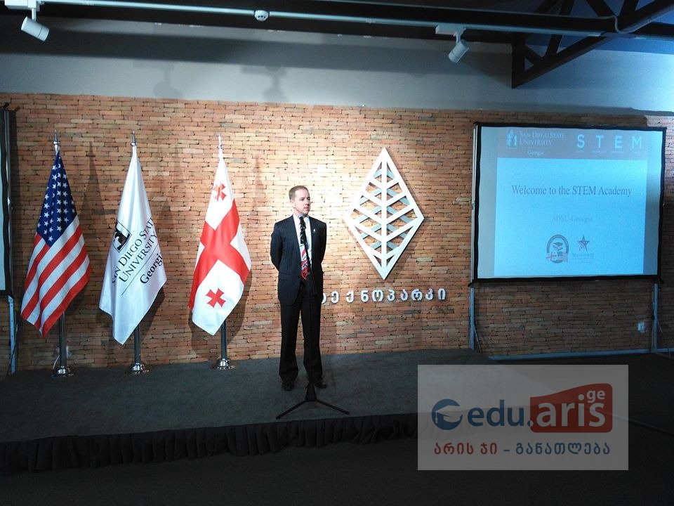 ამერიკელმა პროფესორებმა საინჟინრო და ტექნოლოგიური დარგებით დაინტერესებულ ქართველ აბიტურიენტებს ორდღიანი სემინარი ჩაუტარეს. 23 და 24 აპრილს სან დიეგოს სახელმწიფო უნივერსიტეტის (SDSU) მოწვეულმა პროფესორებმა STEM აკადემიით დაინტერესებულ ახალგაზრდებს ის ყველაფერი გააცნეს, რისი სწავლაც მათ სან დიეგოს უნივერსიტეტის პროგრამებზე ჩაბარების შემთხვევაში მოუწევთ.