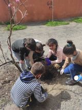 ძველი თბილისის რაიონში მდებარე 300 არაგველის სახელობის ქალაქ თბილისის N 75 საჯარო სკოლის II კლასის მოსწავლეებმა სკოლის ეზო მოასუფთავეს და ახლა იქ გადასარგავად მცენარეებს პატარა კონტეინერებში ზრდიან.