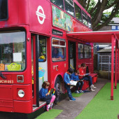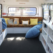 სკოლას სჭირდებოდა ბიბლიოთეკა, მაგრამ მათ არ ჰქონდათ ადგილი ბიბლიოთეკისთვის. გამოსავალი დიზაინერმა ქეით გორელმა იპოვნა. სასწავლო ზონა შეიქმნა არც, მეტი არც ნაკლები ავტობუსის ბორბლებზე. რას იტყვით, რამდენად იაფი გამოსავალია ორსართულიანი ავტობუსი ბიბლიოთეკისთვის?