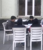 ფოტოებზე ჩანს, რომ გაკვეთილისთვის მომზადებული მასწავლებელი და მოსწავლეები მიტყუპებულ მერხებს უსხედან და სუფთა ჰაერზე ღიმილიანი სახეებით ატარებენ გერმანული ენის გაკვეთილს. შედეგით ყველა კმაყოფილია.