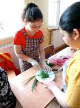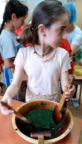 „კომპლექსური დავალება შევასრულეთ ფხალის მომზადებით, რომლის პირობა იყო კვებითი კავშირი ბიომრავალფეროვნებასთან. არიან ნაირმჭამელები, ხორცისმჭამელები და მცენარისმჭამელები. ამჯერად, მცენარისმჭამელებზე შევჯერდით და დავალება ისე შევასრულეთ, რომ მხოლოდ მცენარეული პროდუქტები გამოვიყენეთ. ნიგოზი მივიტანე, როდინი – დასანაყად, მჭადი გამოვაცხეთ ზეთში, რომელიც ასევე მცენარეულია. ფხალისთვის ჭინჭარი, იაია, ტარხუნა, ქინძი და ოხრახუში გამოვიყენეთ. ჭინჭარი და იაია ბავშვებთან ერთად, სკოლასთან ახლოს მდებარე პატარა ტყეში დავკრიფე. წინა დღით დავკრიფეთ, გავრეცხეთ და შევინახეთ. იმერეთში ეს ფხალი ძალიან ღირებული კერძი იყო ყოველთვის. ბავშვებს ვასწავლით დამზადებას, რომ არ დაიკარგოს ეს ტრადიცია“, – გვიყვება მასწავლებელი.