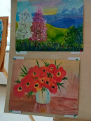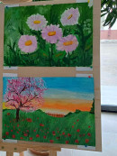 როგორც ფოტოებზე ხედავთ, მეხუთეკლასელი მოსწავლეების ნახატებში ნამდვილი გაზაფხულის ნათელი ფერები ჭარბობდა.