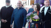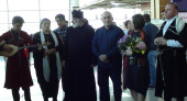 თბილისის საერთაშორისო აეროპორტში სახელმწიფო მინისტრს საზოგადოების თვალსაჩინო წარმომადგენლებთან ერთად საქართველოს საპატრიარქოს წმიდა კეთილმსახური მეფე თამარის სახელობის სკოლა-პანსიონის პედაგოგები და მოსწავლეებიც დახვდნენ. ხალხურ საკრავთა ორკესტრმა შეასრულა მუსიკა კინოფილმიდან “ფესვები”.