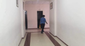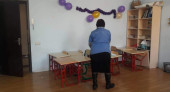 დეზინფექციის სპეციალისტმა ექიმის და ექთნის მეთვალყურეობით დამუშავდა სკოლის მერხები