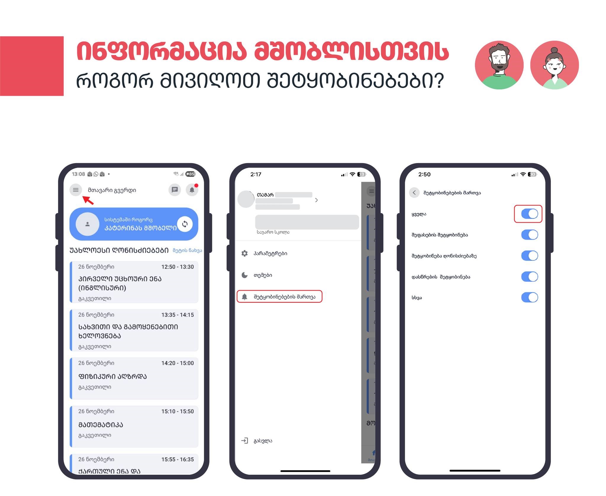 როგორ უნდა მიიღოს მშობელმა შვილის სასკოლო შეფასებები და სხვა შეტყობინებები მობილურ აპლიკაციაში