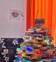 თბილისის მე-60 საჯარო სკოლას კი წიგნებით აწყობილი ნაძვის ხე, აქვს. მათი თქმით, ბიბლიოთეკურ სტილშია გადაწყვეტილი. განათებული წიგნების თავზე მოთავსებულია სურვილების კალათაც, რომელშიც მოსწავლეები საახალწლო სურვილებს ჰყრიან.