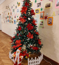 ახალციხის მე-6 საჯარო სკოლაში EDU.ARIS.GE-ს უთხრეს, რომ წელს მათ დათოვლილ ნაძვის ხეზე შეაჩერეს არჩევანი. 4 ფერში გადაწყვეტილი განათება კი, ნაძვის ხეს კიდევ უფრო მშვენიერს ხდის.