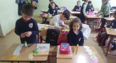 თბილისის მე-6 საჯარო სკოლის Iბ და Iგ კლასებში მათემატიკის გაკვეთილზე გეომეტრის დახმარებით საახალწლო დეკორაციები დაამზადეს.